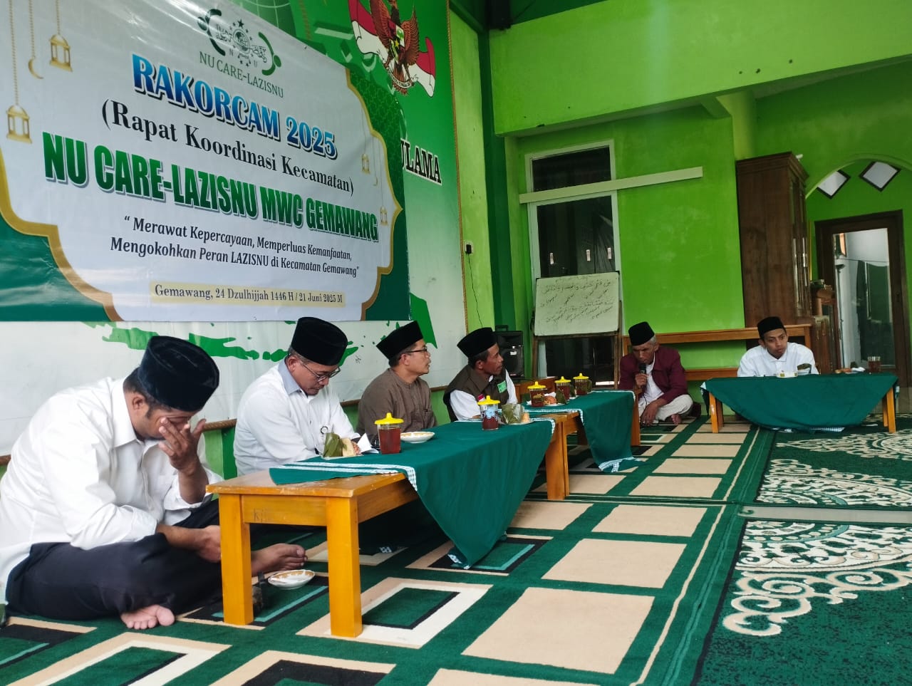 Gemawang, Sabtu (21/06/2025) — NU Care-LAZISNU MWCNU Gemawang menggelar Rapat Koordinasi Kecamatan (RAKORCAM) 2025 di Gedung MWCNU Gemawang. Acara ini dihadiri oleh para pengurus Syuriah dan Tanfidziah NU, pengurus LAZISNU dari 10 ranting/desa se-Kecamatan Gemawang, serta para PPK (Petugas Penjemput Koin), dengan total peserta sebanyak 80 orang.